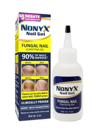 According to brand, the Nonyx Nail Gel is a clinically proven effective topical nail solution for fungus damaged and discolored fingernails and toenails.