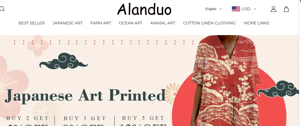 Alanduo is a website that should be approached with extreme caution, if not entirely avoided. It is selling various products like japanese art printed tops, linen crop pants, japanese printed midi dress, etc. After conducting thorough research and assessing numerous customer complaints, it is clear that this website is nothing more than a scam designed to deceive unsuspecting shoppers. Here are some reasons why customers should not shop from Alanduo