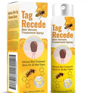 According to brand, the Aqa Tag Recede Bee Venom Treatment Spray, repairs damaged skin, removes warts, Promotes repair and regeneration of new skin.
