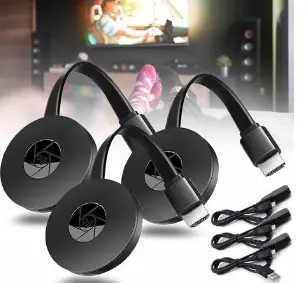 According to the manufacturers, it allows you to watch videos from small screens (i-Phone, i-Pad, Android smartphones, tablets, laptops) to large screen devices (TV/Monitor/Projector). Wirelessly display small to large screens, support 1080P, and enjoy high-quality images.