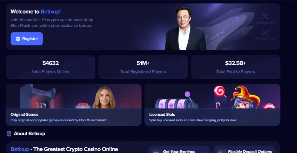 At first glance, Betixup.com looks like a high-end crypto gaming site. Slick animations, crypto logos, colorful game thumbnails, They promise: