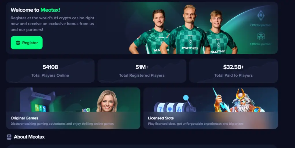 If you’ve stumbled across Meotax.com while scrolling through social media or Telegram groups, you might have seen bold claims like “#1 decentralized crypto gaming platform,” “instant payouts,” and massive welcome bonuses that sound way too generous to be real.