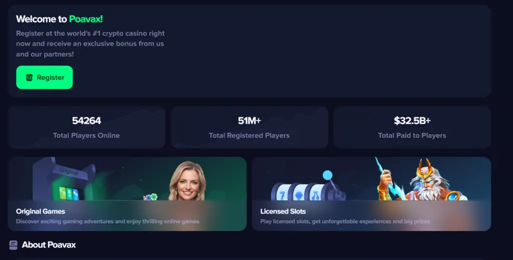 If you’ve stumbled across Poavax.com while scrolling through social media or Telegram groups, you might have seen bold claims like “#1 decentralized crypto gaming platform,” “instant payouts,” and massive welcome bonuses that sound way too generous to be real.