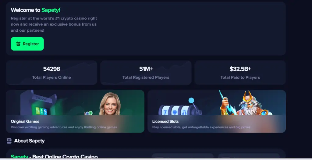 If you’ve stumbled across Sapety.com while scrolling through social media or Telegram groups, you might have seen bold claims like “#1 decentralized crypto gaming platform,” “instant payouts,” and massive welcome bonuses that sound way too generous to be real.