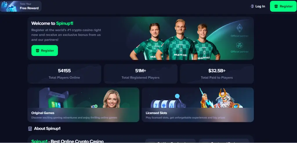 At first glance, Spinup1.com looks like a high-end crypto gaming site. Slick animations, crypto logos, colorful game thumbnails, They promise: