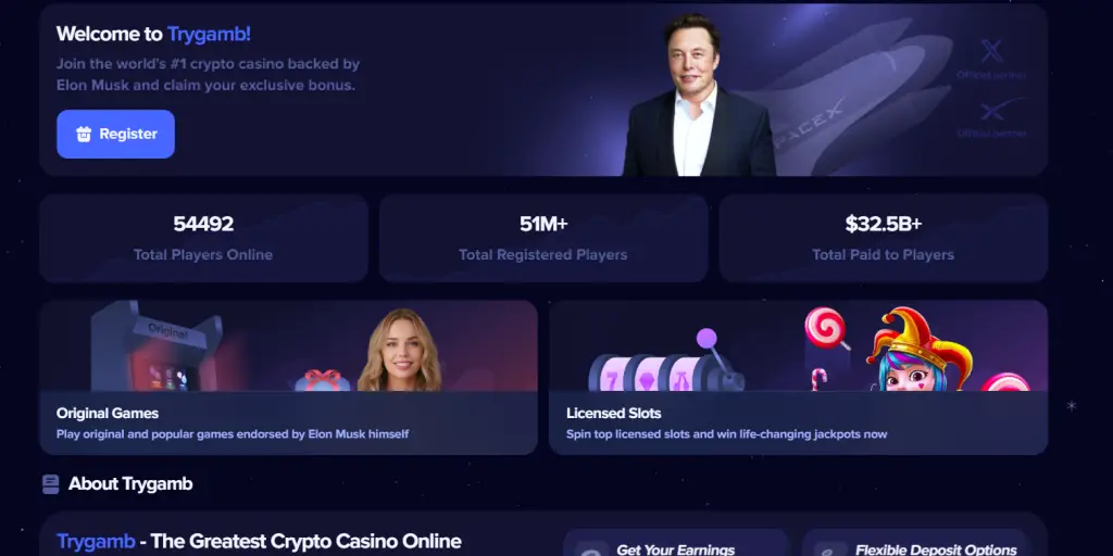 At first glance, TryGamb.cc looks like a high-end crypto gaming site. Slick animations, crypto logos, colorful game thumbnails, They promise: