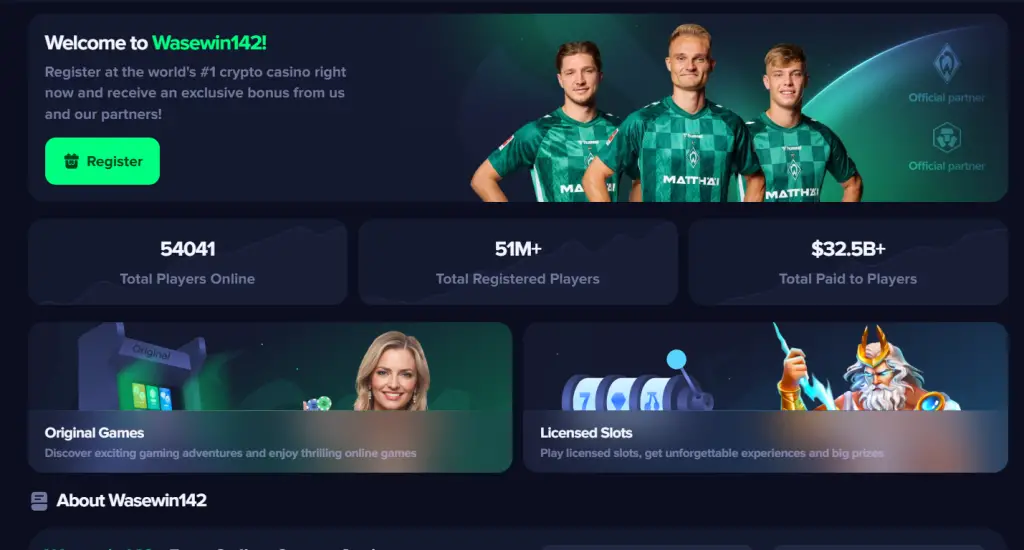 At first glance, WaseWin.com looks like a high-end crypto gaming site. Slick animations, crypto logos, colorful game thumbnails, They promise: