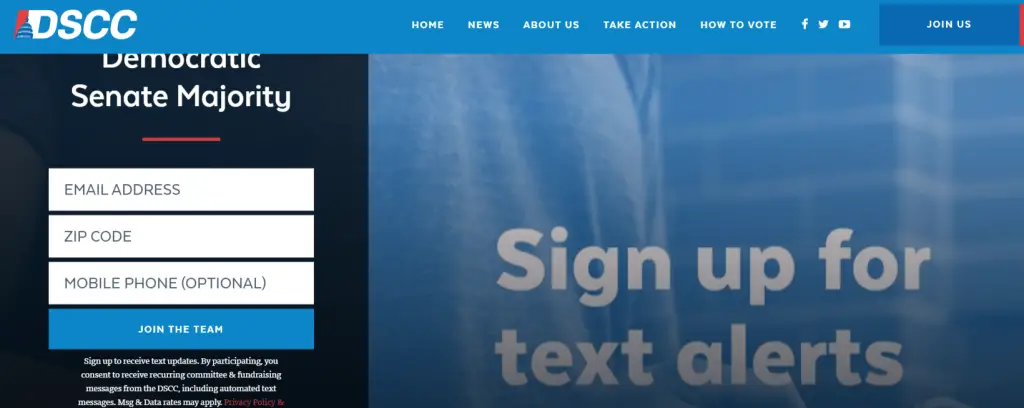 Visitors can help by signing up for text updates, participating in petitions and surveys, and making donations. The DSCC relies heavily on small donations from everyday people to fund their activities.