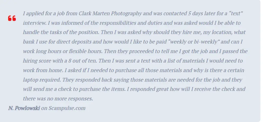Did you receive an unknown job text message claiming to be from Clark Marten Photography? Did you know that was someone posing as a recruiter at Clark Marten Photography? Be cautious! Scammers are onto something sinister this day.