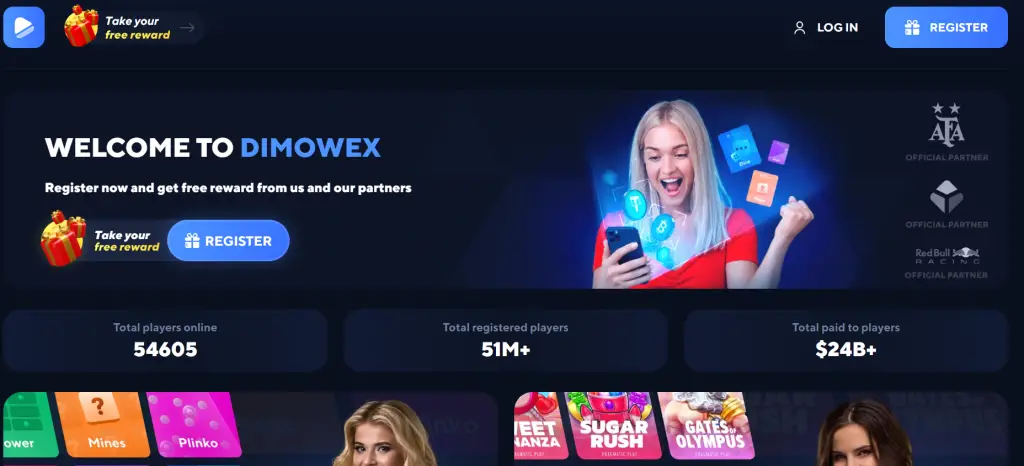 At first glance, Dimowex.com looks like a high-end crypto gaming site. Slick animations, crypto logos, colorful game thumbnails, They promise: