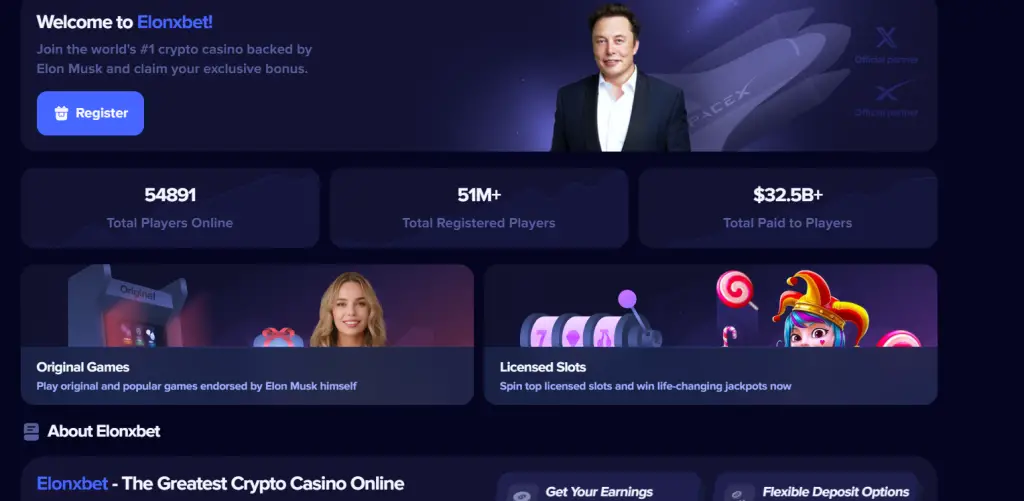 At first glance, ElonxBet.com looks like a high-end crypto gaming site. Slick animations, crypto logos, colorful game thumbnails, They promise: