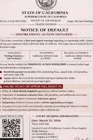 You’ll also see the name “Judge Michael Rodriguez” printed on it, along with something dramatic like “NOTICE OF DEFAULT” or “Enforcement Action.” The wording is meant to push urgency, talking about unpaid fines, possible license suspension, or legal action if you don’t respond quickly.