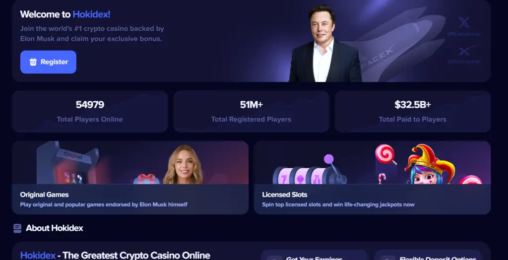 At first glance, Hokidex.com looks like a high-end crypto gaming site. Slick animations, crypto logos, colorful game thumbnails, They promise: