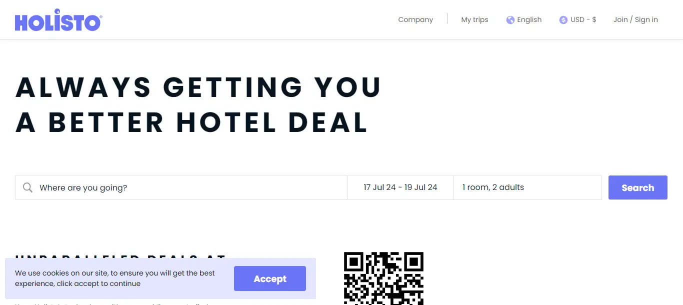 Holisto is an online travel and hotel booking platform. It claims to provide access to various accommodation options worldwide.