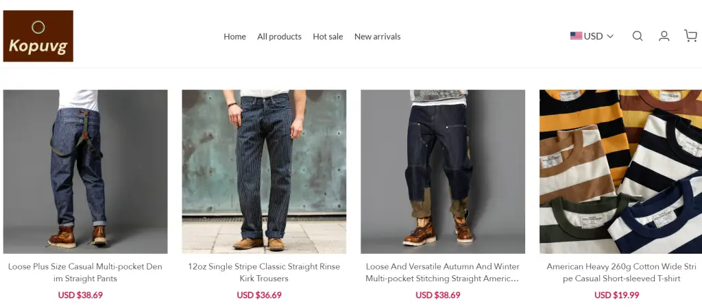 Kopuvg is a website that should be approached with extreme caution, if not entirely avoided. It is selling various products like straight pants, short sleeved Tshirt, cargo Tshirt, etc. After conducting thorough research and assessing numerous customer complaints, it is clear that this website is nothing more than a scam designed to deceive unsuspecting shoppers. Here are some reasons why customers should not shop from Kopuvg
