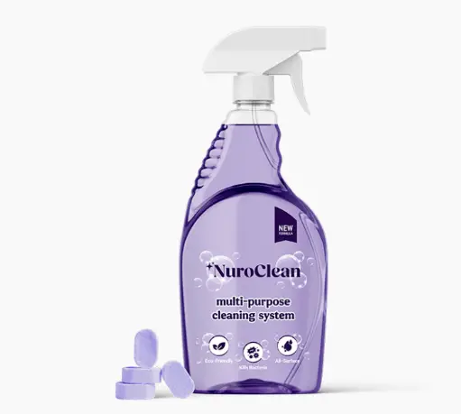 NuroClean is a concentrated cleaning tablet that you dissolve in water to create a multi-surface spray cleaner. It usually comes in a “starter kit” with a reusable spray bottle and 6 tablets. The brand markets it as: