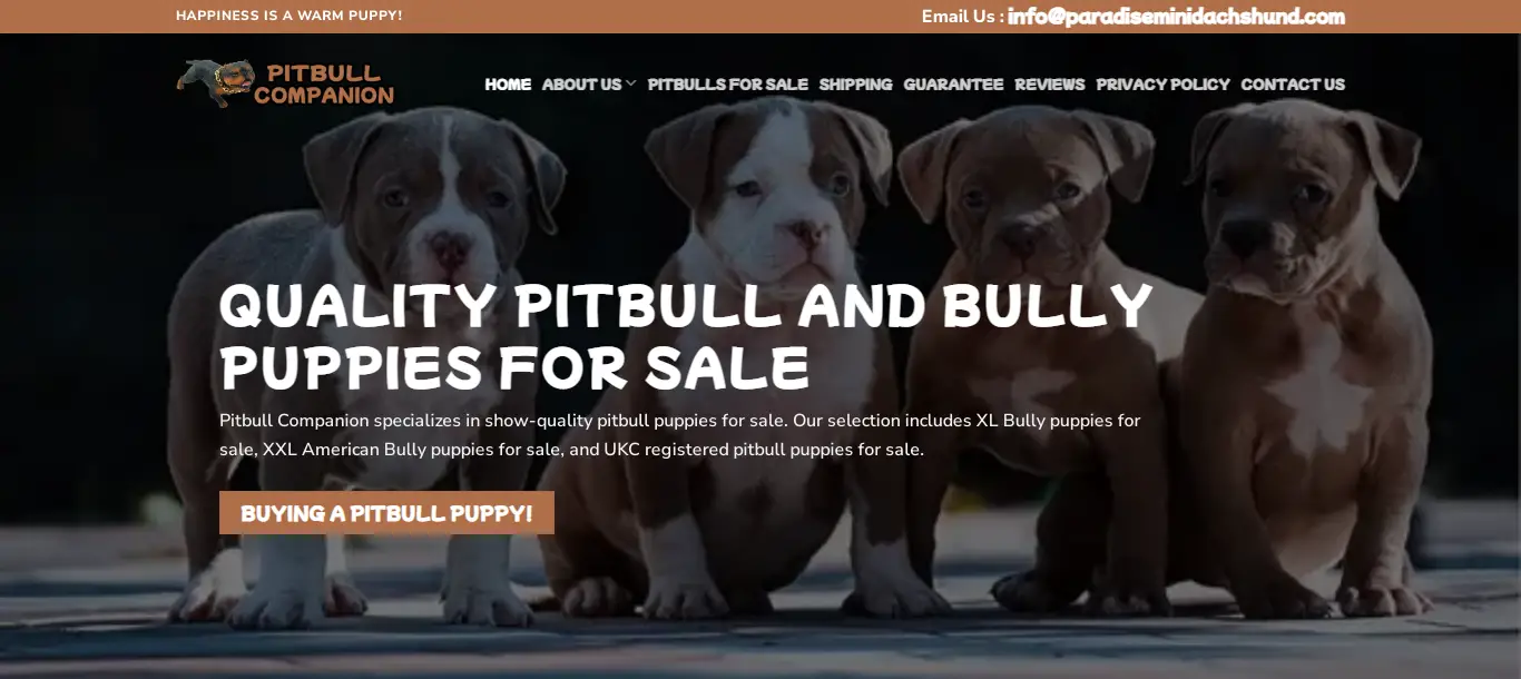 Pitbullcompanion.com is a website that should be approached with extreme caution, if not entirely avoided. It is a store is selling various Pitbull puppies ,, etc. After conducting thorough research and assessing numerous customer complaints, it is clear that this website is nothing more than a scam designed to deceive unsuspecting pet lovers. Here are some reasons why customers should not shop from Pitbullcompanion.com: