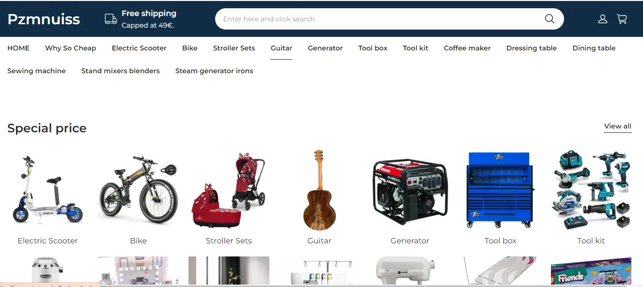Pzmnuiss.com is a website that should be approached with extreme caution, if not entirely avoided. It is a store is selling various products like ,Electric scooter, stroller sets, guitar, generator, etc. After conducting thorough research and assessing numerous customer complaints, it is clear that this website is nothing more than a scam designed to deceive unsuspecting shoppers. Here are some reasons why customers should not shop from Pzmnuiss.com: