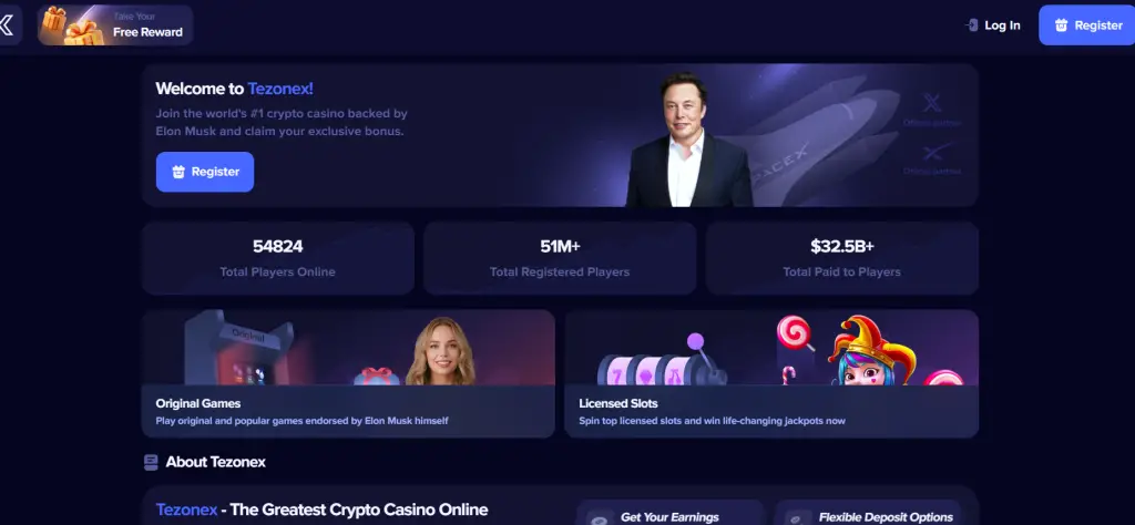 At first glance, Tezonex.com looks like a high-end crypto gaming site. Slick animations, crypto logos, colorful game thumbnails, They promise:
