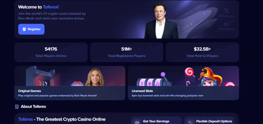 At first glance, Toferex.com looks like a high-end crypto gaming site. Slick animations, crypto logos, colorful game thumbnails, They promise: