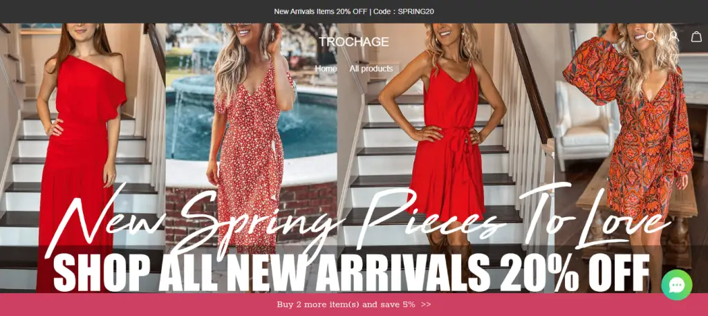 Trochage.com is a website that should be approached with extreme caution, if not entirely avoided. It is a store is selling various products such as Two piece, dress, tops, skirts, etc. After conducting thorough research and assessing numerous customer complaints, it is clear that this website is nothing more than a scam designed to deceive unsuspecting shoppers. Here are some reasons why customers should not shop from Trochage.com: