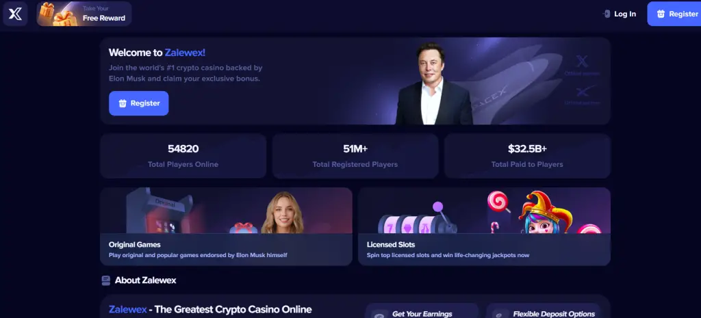 At first glance, ZaleWex.com looks like a high-end crypto gaming site. Slick animations, crypto logos, colorful game thumbnails, They promise: